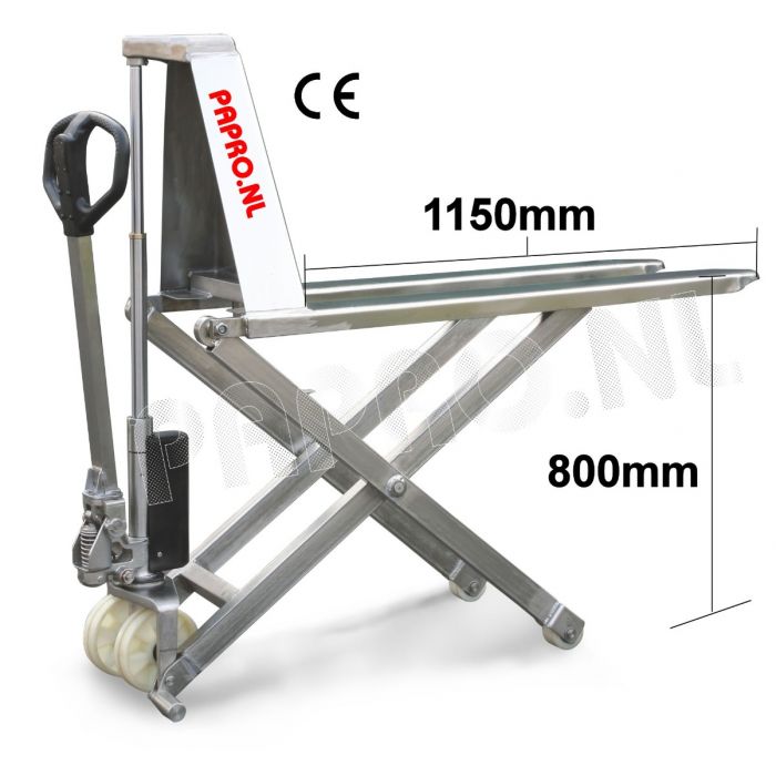 Hoogheffende RVS schaarhefwagen 1000 kg